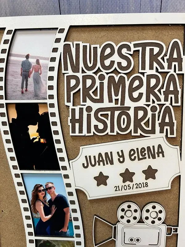 Celebra los momentos que marcaron el comienzo de su historia con este marco único y lleno de significado. Nuestro marco personalizado está grabado y cortado a láser con el texto “Nuestra primera historia”, logrando un acabado preciso, elegante y duradero.
